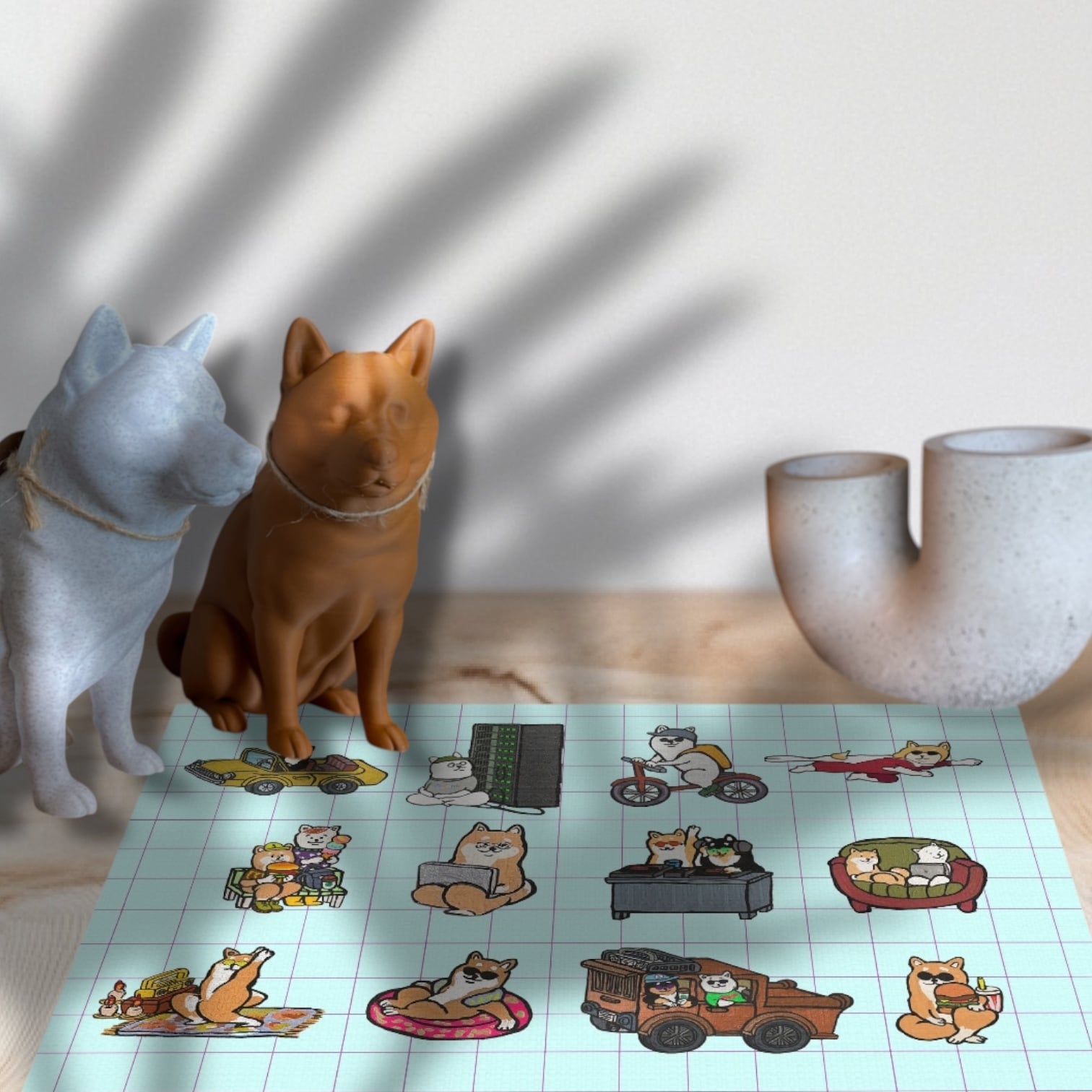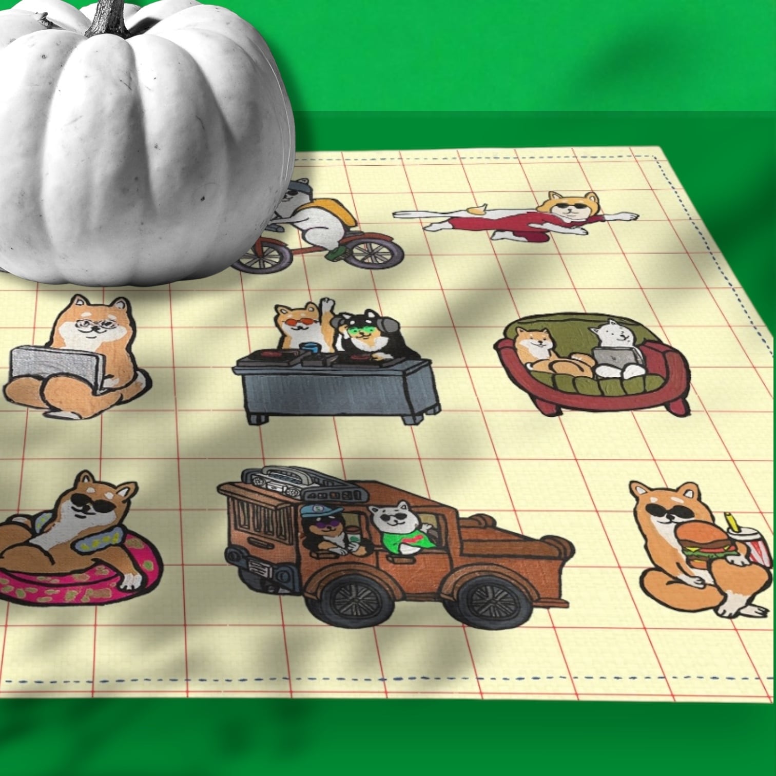 【ランチョンマット】ヨガ柴、プール柴、ジープ柴などの人気の柴犬を詰め合わせたおすすめのランチョンマットです。お食事と一緒にお気に入りの柴さんを探してください^^