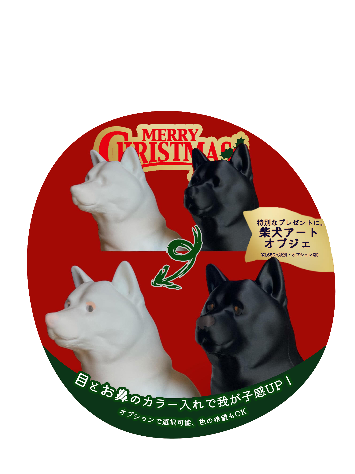 ちょっと特別なクリスマスプレゼントを探している方はこちらの【柴犬アートオブジェ】いかがですか?オンラインストアでしか買えないクリスマス期間限定オプションが付いたリアルな柴犬アートオブジェです。