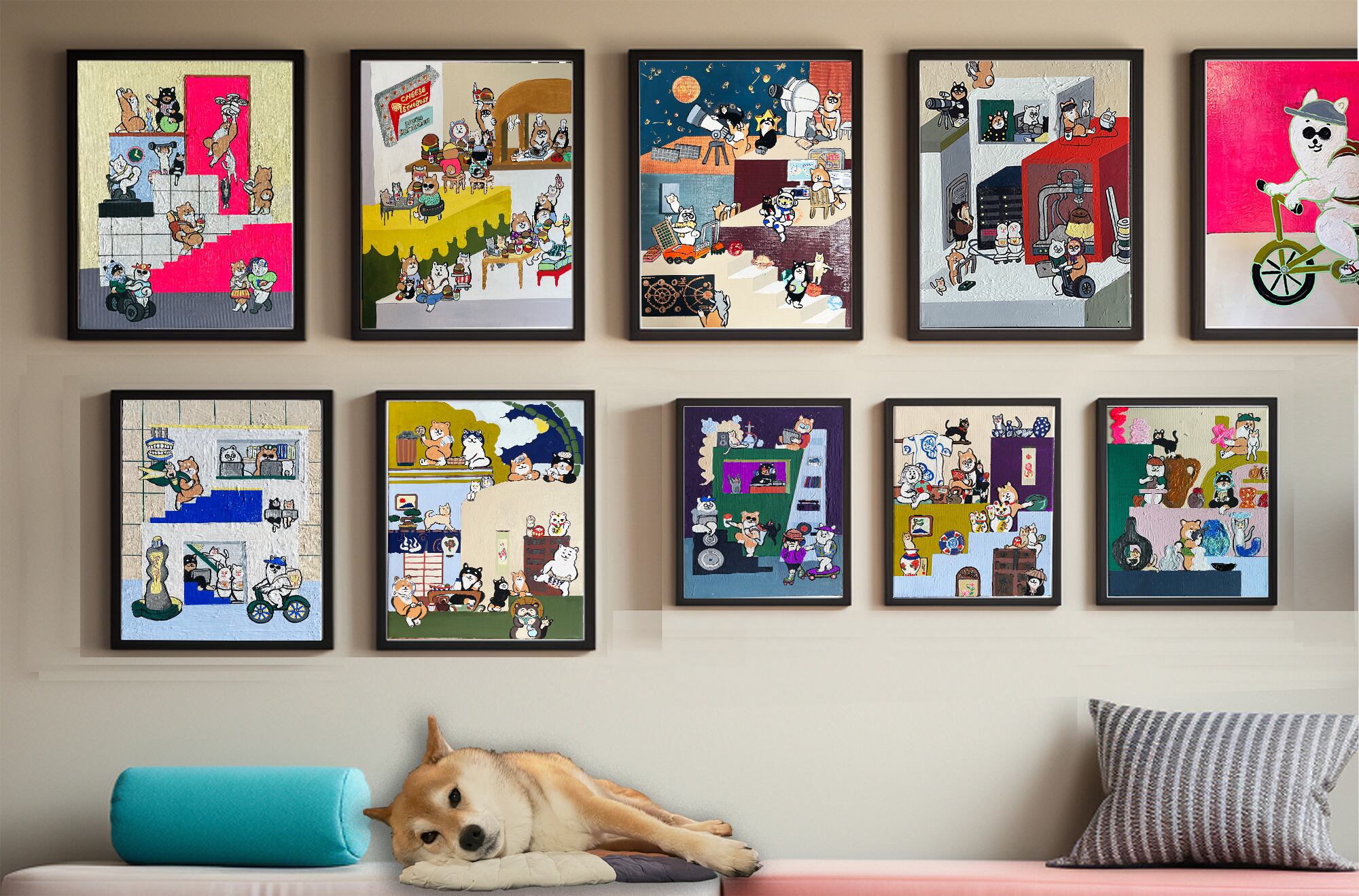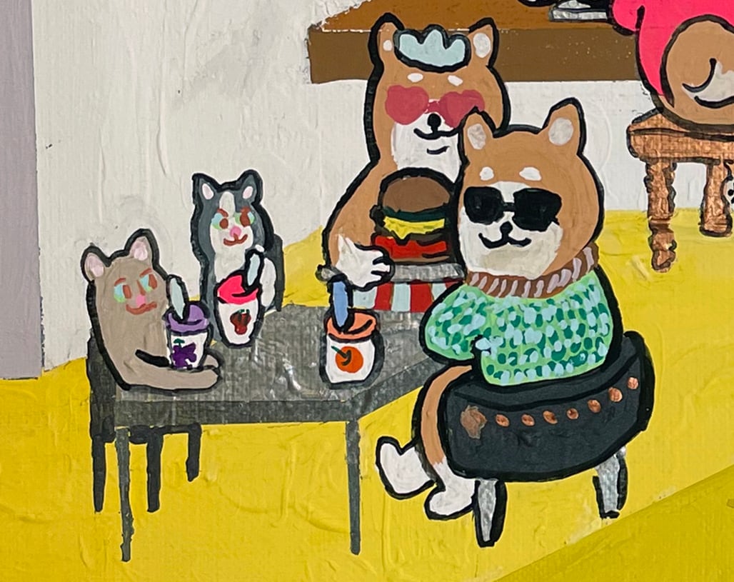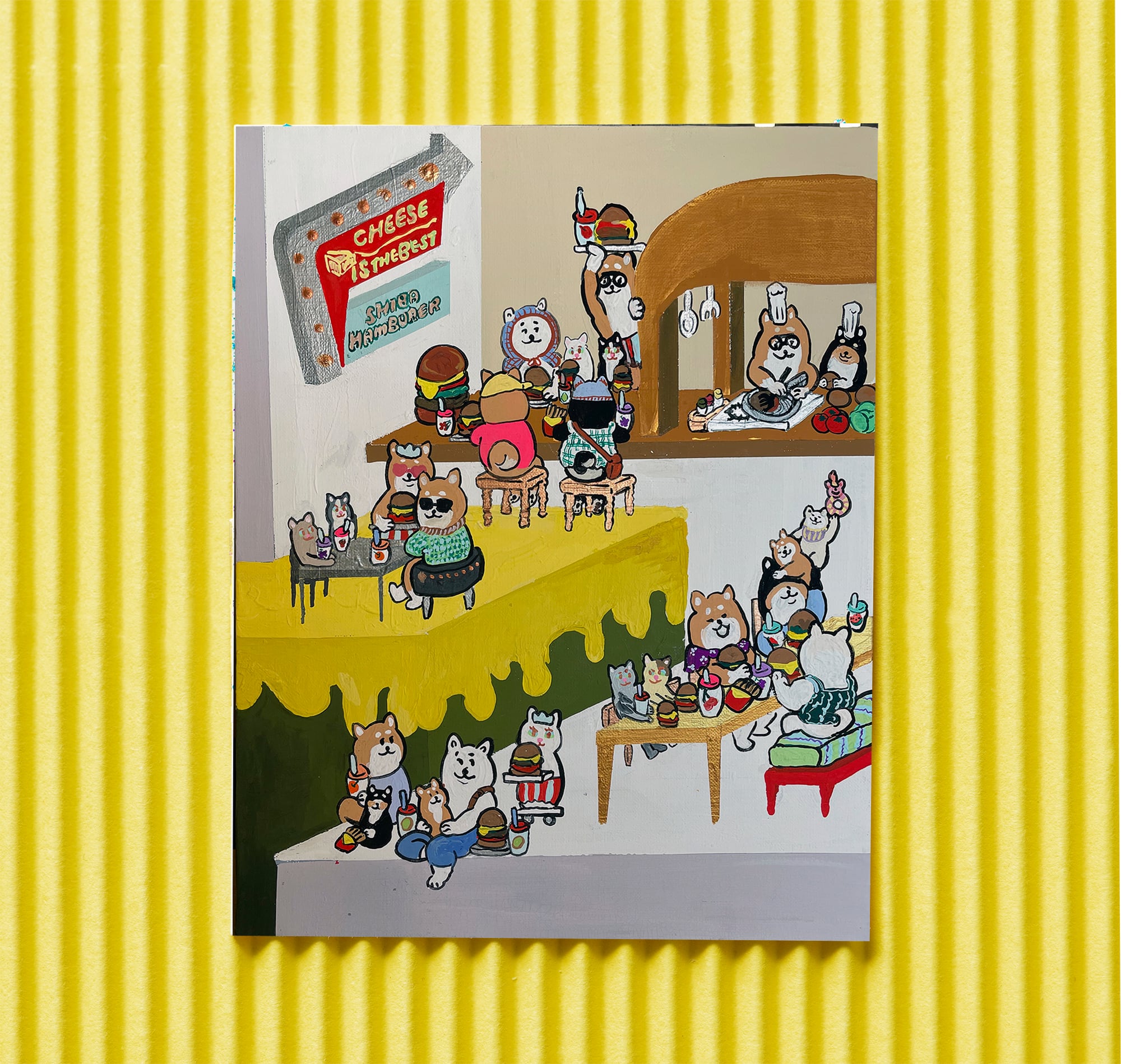 This work is filled with the hope that Shiba Inu dogs, who love to eat, will be able to eat their fill of cheese.