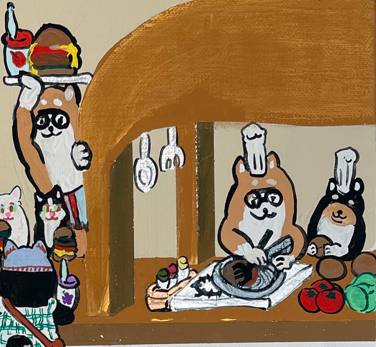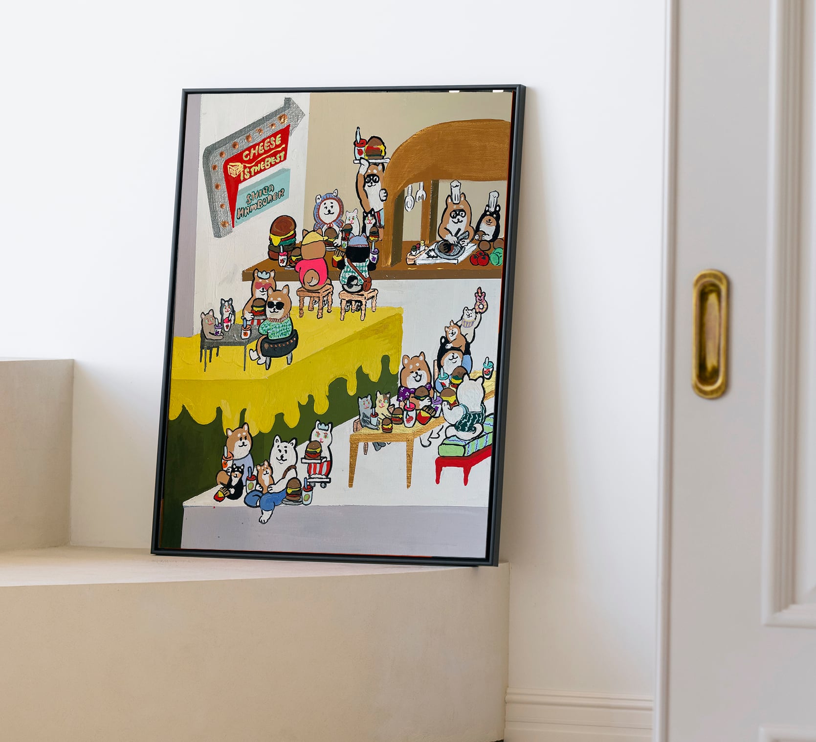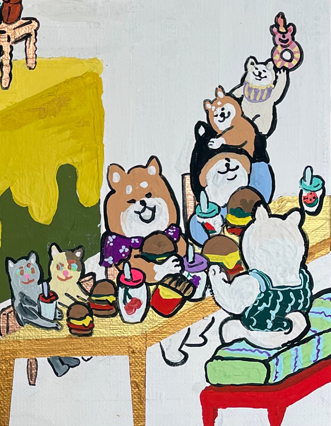 This work is filled with the hope that Shiba Inu dogs, who love to eat, will be able to eat their fill of cheese.