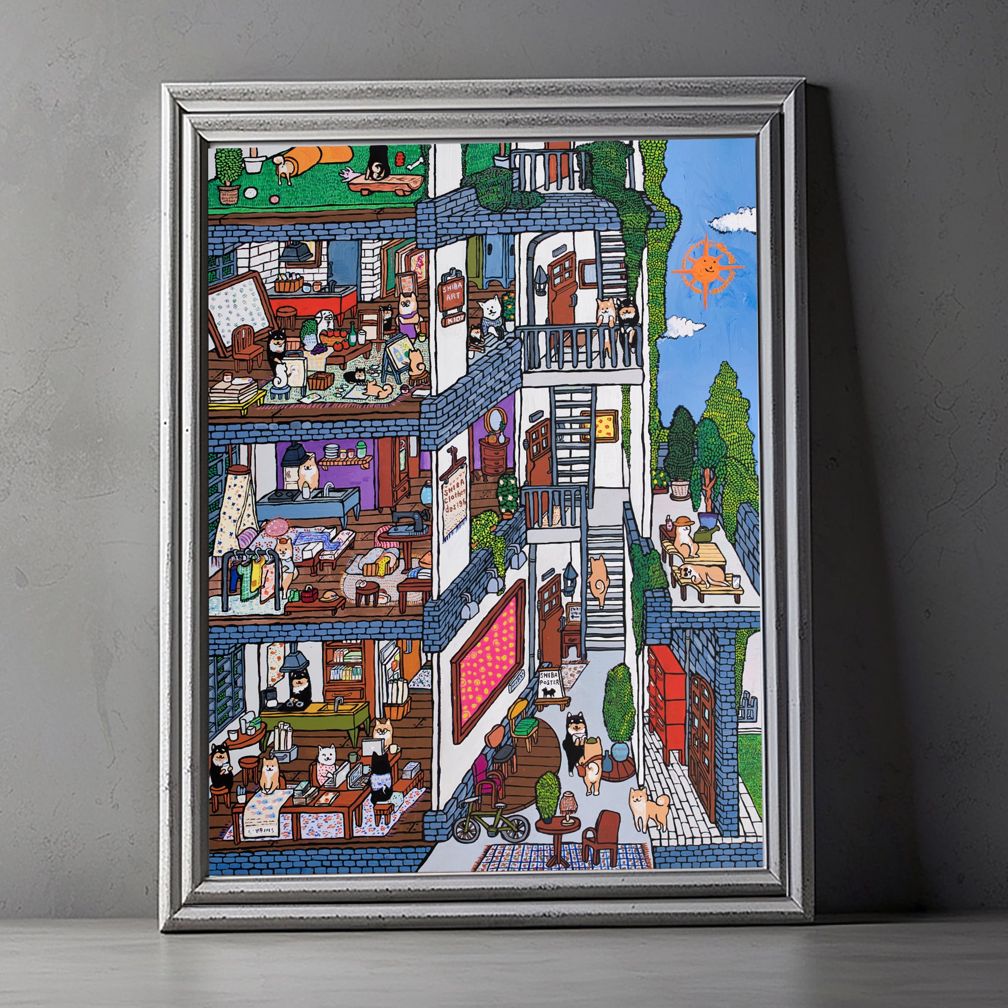 【作品紹介】26匹の柴犬が集まる集合住宅「SHIBA GARDEN APARTMENT 」を描きました。