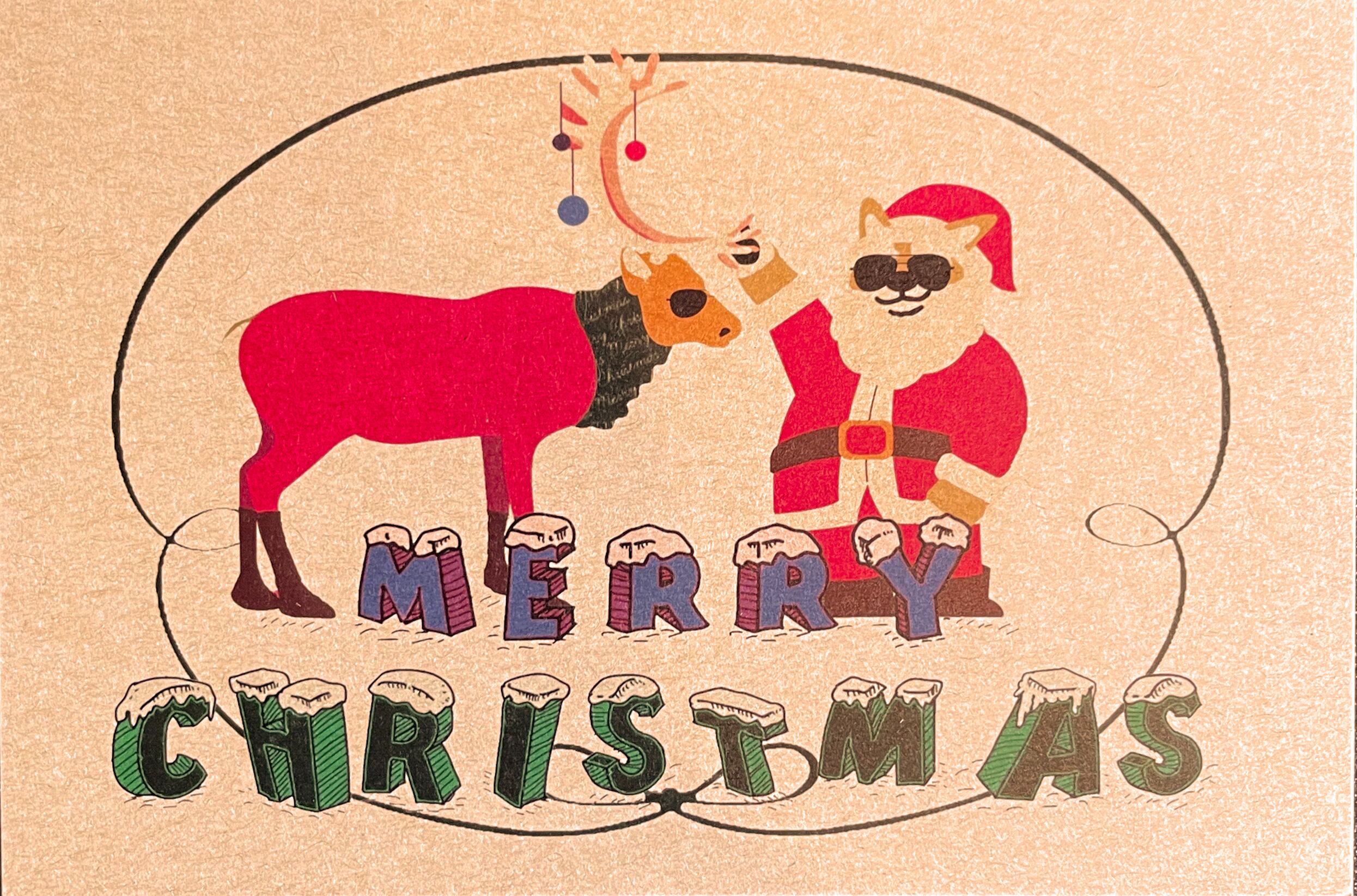 柴犬と猫とクリスマスをモチーフにした5枚セットのクリスマスカードです。