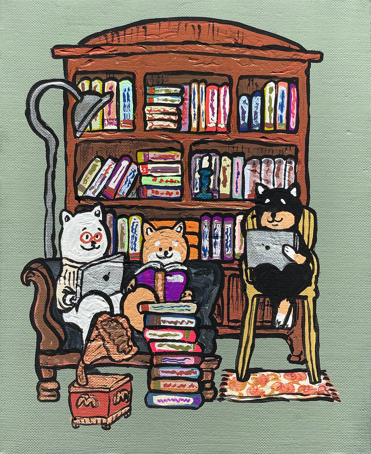 【原画:3号】学ぶ柴犬( olive green )[Shiba Inu dogs studies olive green]